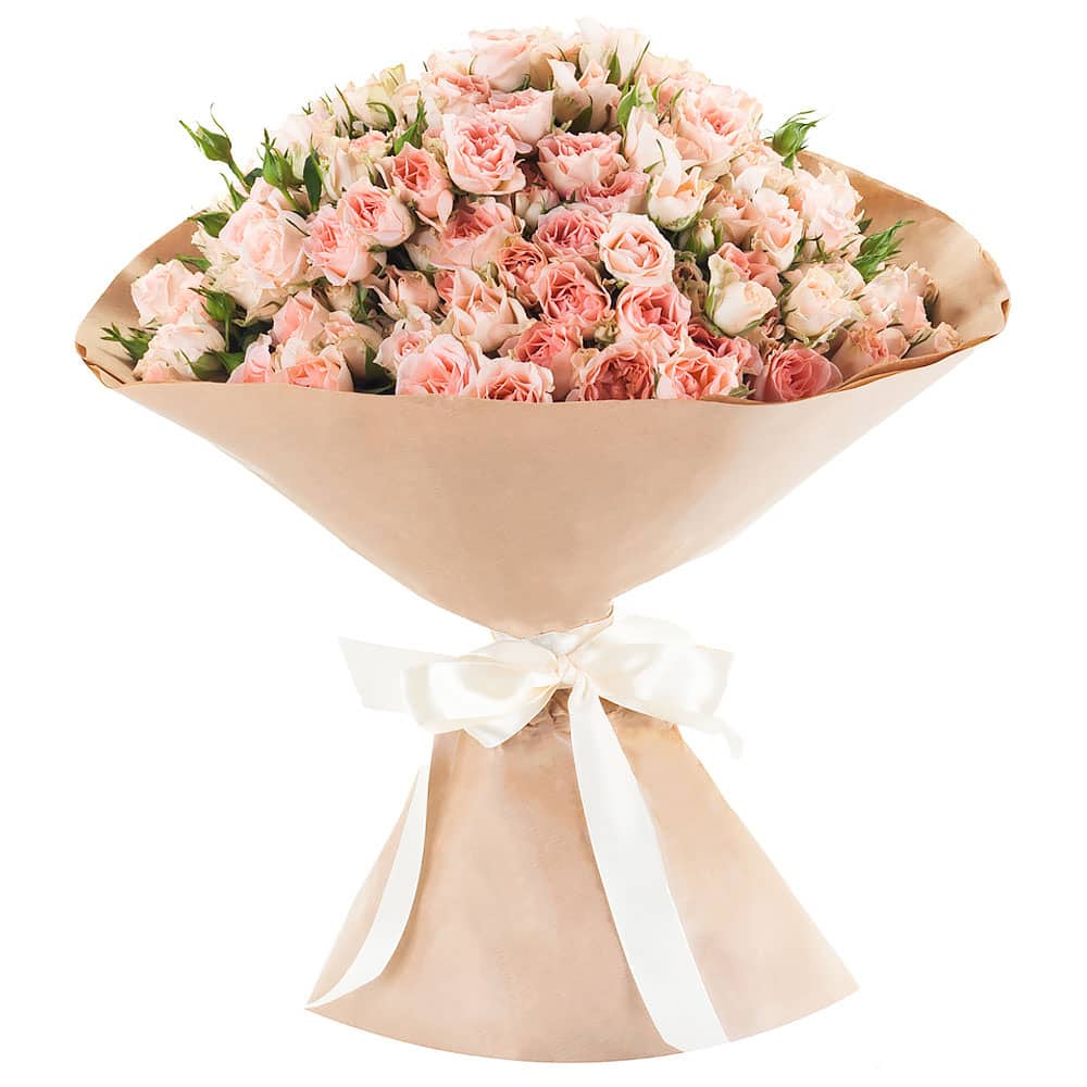 Кустовая роза кремовая. Упаковка (лента, пленка, крафт, сетка, пленка матовая)