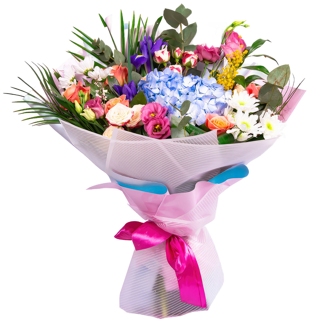 | Состав | Гортензии, Ирисы, Мимозы, Розы, Эвкалипт, Эустомы |
