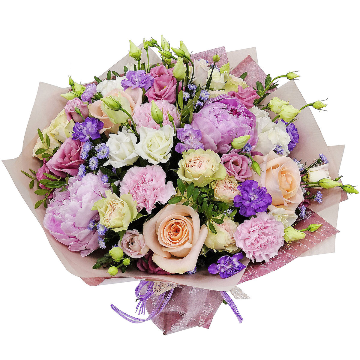 | Состав | Гвоздики, Кустовые розы, Маттиола, Пионы, Розы, Эустомы |