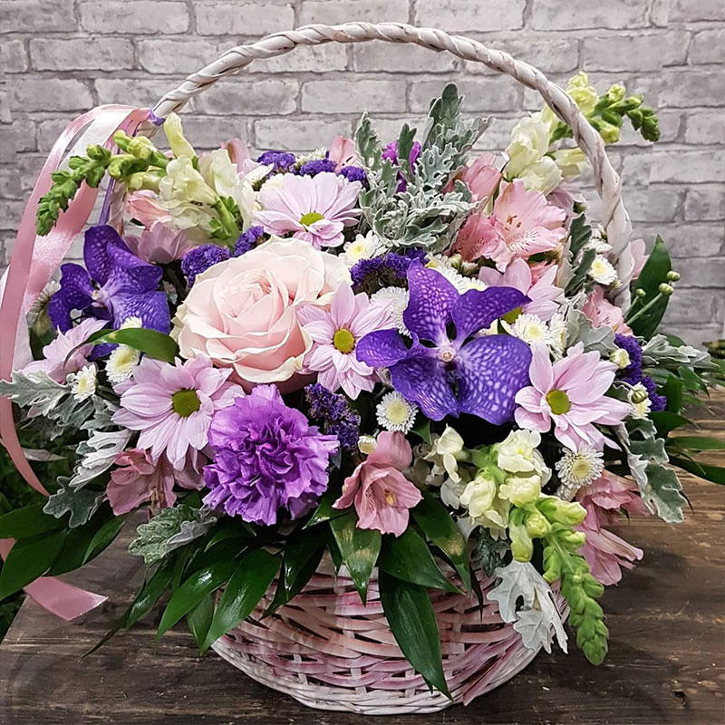 | Состав | Альстромерии, Гвоздики, Розы |