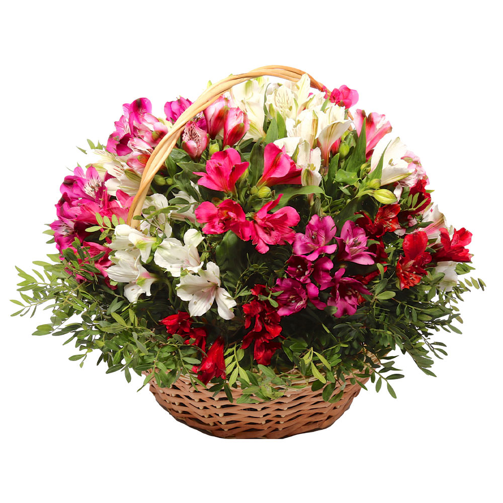 Цветы в корзинке «Краски альстромерий» с доставкой по г Мензелинск: вы можете заказать букет в супермаркете цветов «Флормания» по цене от 3490 руб.