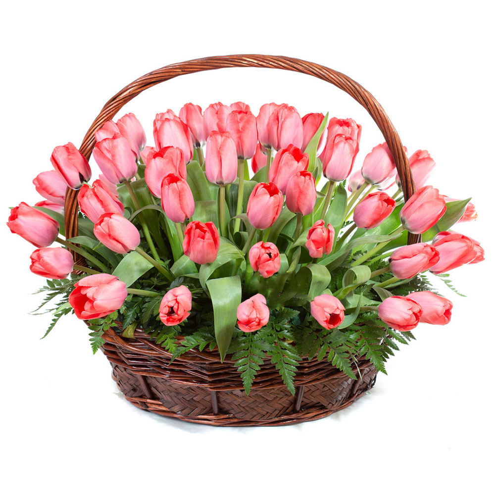 Цветы в корзинке «Розовые тюльпаны» с доставкой по г Мензелинск: вы можете заказать букет в цветочном интернет-магазине «Флормания» по цене от 3490 руб.